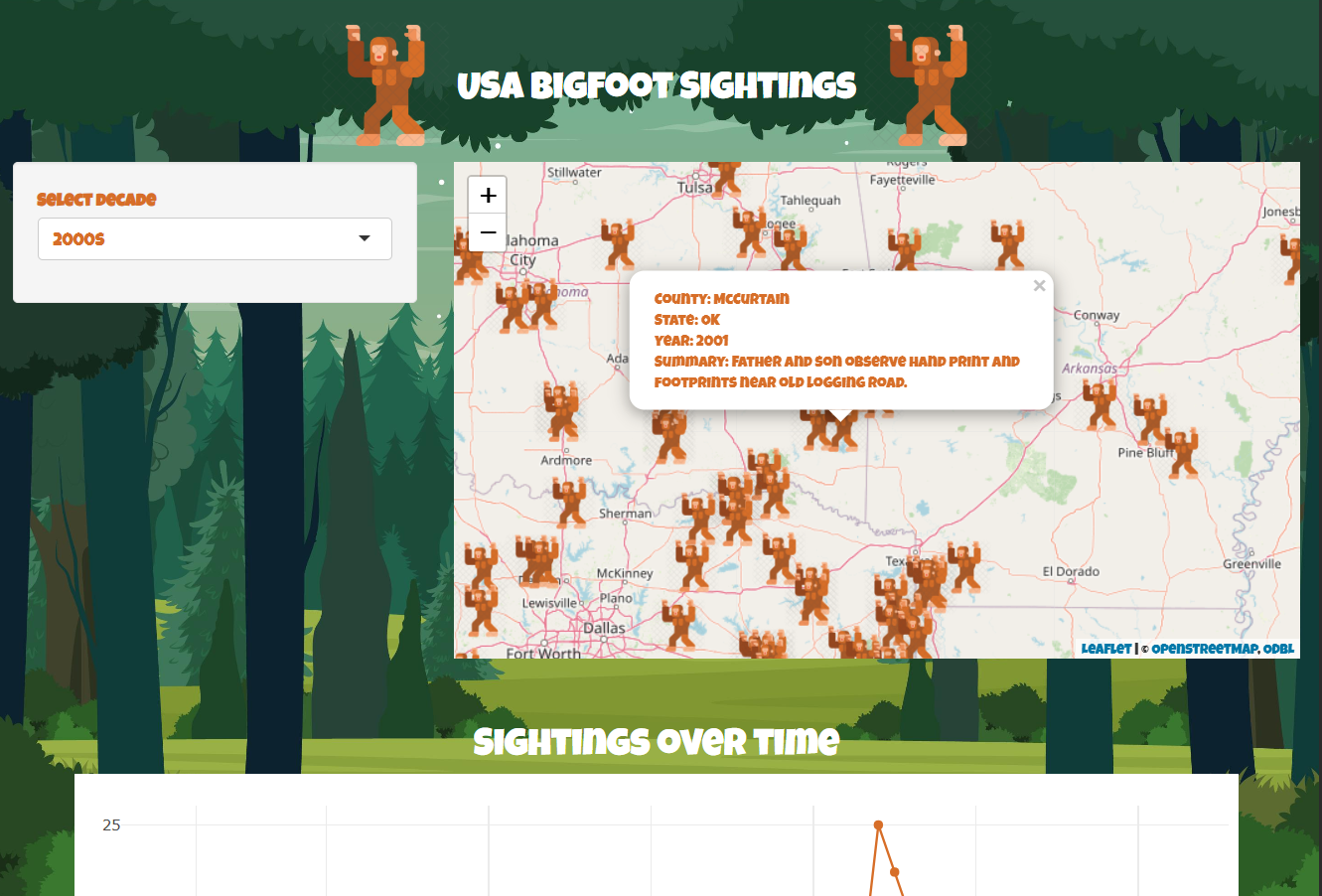 The data are scraped from North American Wood Ape Conservancy, which appears to be somewhat biased towards sightings in Texas.